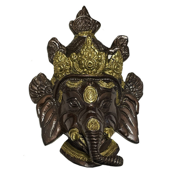 Tête de Ganesh en laiton en 2 couleurs de 14 cm :
