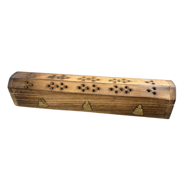 Porte encens grande boite motifs bouddha en bois de papri